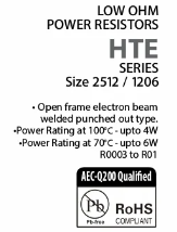 La cartera de productos ofrece toda la gama de resistencias, con características físicas y eléctricas especiales. Estas son idóneas para soluciones que requieran fiabilidad y prestaciones. Cabe mencionar que las soluciones de la serie HTE son especialmente diseñadas para ser utilizadas como sensor de corriente para aplicaciones híbridas de potencia.
