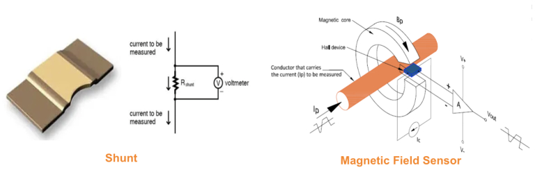La corriente se puede detectar o medir de dos formas: mediante la caída de voltaje a través de algún tipo de resistor, también conocido como shunt, o mediante la intensidad del campo magnético que emana de cualquier conductor que transporte corriente.