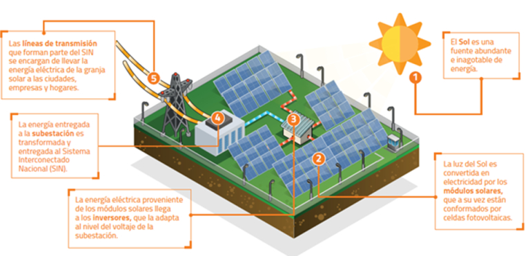 Una Planta Fotovoltaica, también conocido como “Huerto Solar”, es una instalación diseñada para convertir la energía solar en electricidad de manera eficiente. Por lo general se componen de unos elementos fijos. En cada una de las diferentes etapas se gestiona la Energía de diferentes formas. A continuación se describen cada una de ellas: