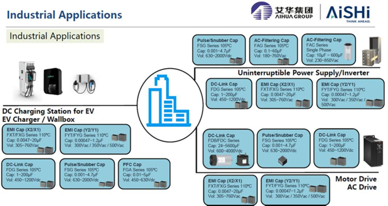 El Grupo Aihua (AISHI) es uno de los principales productores de condensadores a nivel mundial y cuenta con soluciones específicas para aplicaciones de conversión solar.